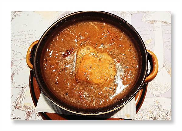 洋蔥湯,味道濃郁香甜,卻又不會過於甜膩,是很好喝的洋蔥湯